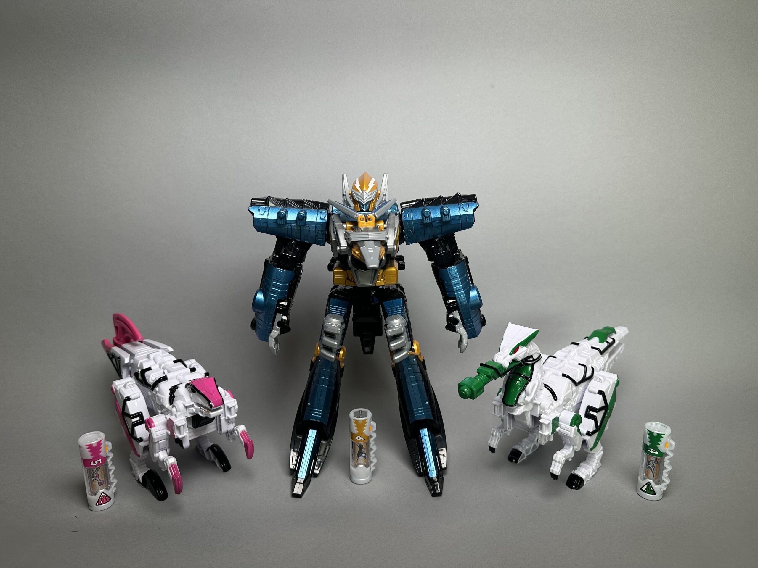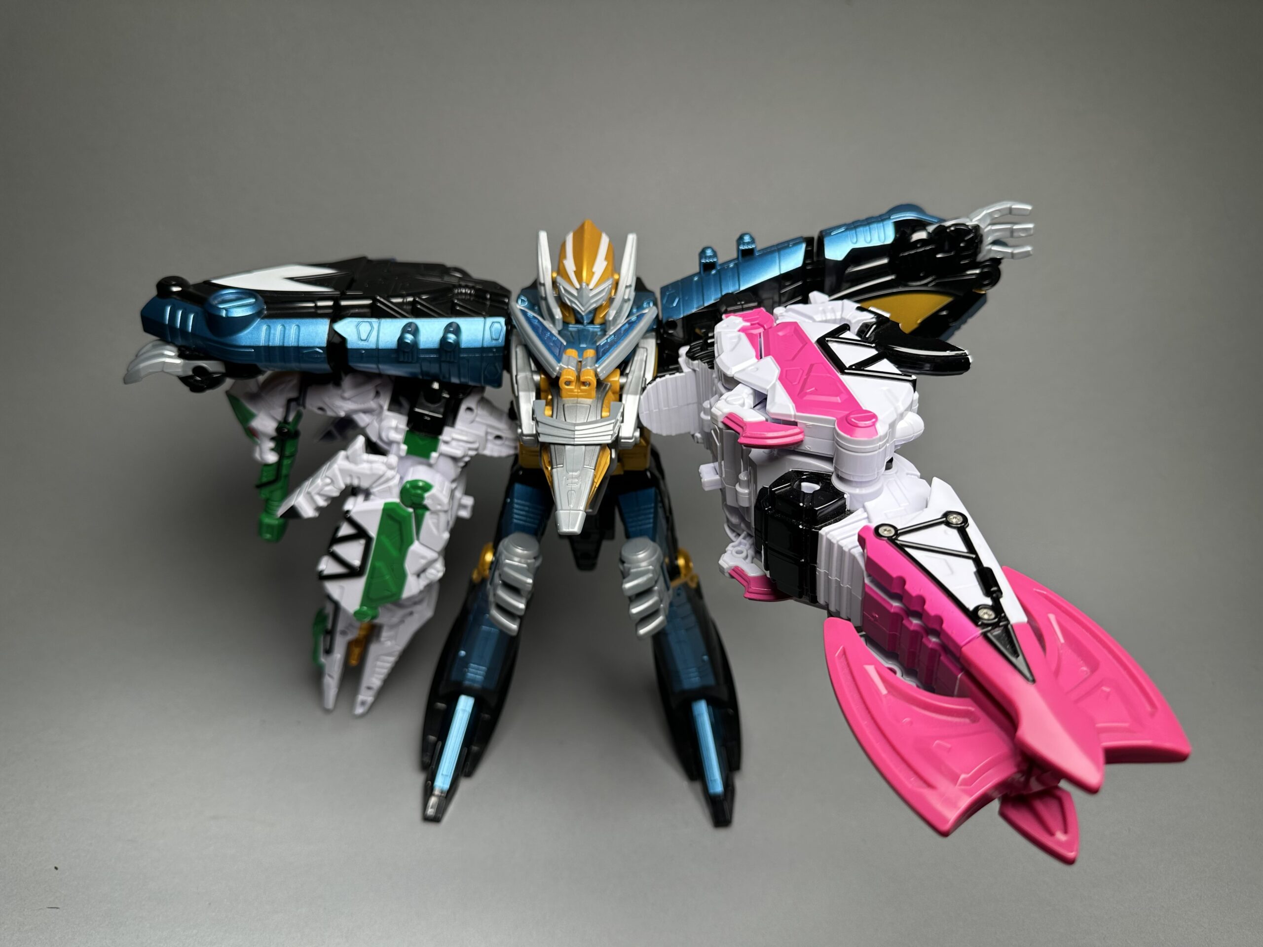 including one Brave Pteraidenoh and one Parasaser and one Rapx with three corresponding Zyudenchi. Gimmicks confirmed working.